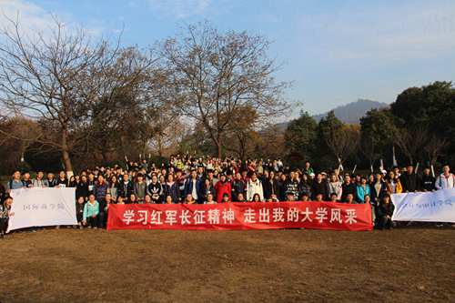 12月3日是一個平常的周六,但對于南京審計大學(xué)金審學(xué)院的200余名大一新生們并不尋常。中山門外向來靜悄悄,這一天清晨卻熱鬧起來,同學(xué)們放棄了周末的休息時間,早早地來到這里集合準(zhǔn)備出發(fā)。在南京審計大學(xué)金審學(xué)院莊懷軍老師與南京外國語學(xué)校退休教師陳景和老師動員和帶領(lǐng)下,“學(xué)習(xí)紅軍長征精神走出我的大學(xué)風(fēng)采”環(huán)南京城之行正式啟程。