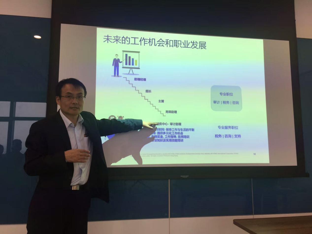 下午兩點(diǎn),同學(xué)們帶著激動(dòng)的心情,來(lái)到了畢馬威。在畢馬威員工的帶領(lǐng)下,我們來(lái)到了位于21層的畢馬威中國(guó)南京分所,進(jìn)行參觀學(xué)習(xí)。首先是人力資源的Sophie給我們介紹了今日的流程,并介紹了畢馬威的一些基本情況及服務(wù)中心。隨后,Peter給我們介紹了畢馬威未來(lái)的工作機(jī)會(huì)和職業(yè)發(fā)展。畢馬威的工作晉升歷程簡(jiǎn)單而明確,要從基層工作人員做到合伙人這樣的位置,需要的是時(shí)間以及不斷奮斗的恒心,這一點(diǎn)不管在什么樣的工作環(huán)境中都是必要的。同學(xué)們聽得都很投入,有疑問(wèn)的地方,Peter也都一一為我們解答疑惑。接下來(lái),四位職員分批次帶領(lǐng)我們參觀畢馬威的工作環(huán)境,兩層樓的面積不大,但是卻能感受到作為全球四大會(huì)計(jì)師事務(wù)所之一的畢馬威嚴(yán)謹(jǐn)、專業(yè)的素質(zhì),這一點(diǎn)確實(shí)讓人感覺與其他事務(wù)所有所不同。參觀結(jié)束后,畢馬威貼心地為我們準(zhǔn)備了飲品和點(diǎn)心,還贈(zèng)送了我們小禮品,這讓我們對(duì)畢馬威人性化的工作環(huán)境非常心動(dòng)。最后,我們?nèi)w師生和畢馬威的職員合影留念。