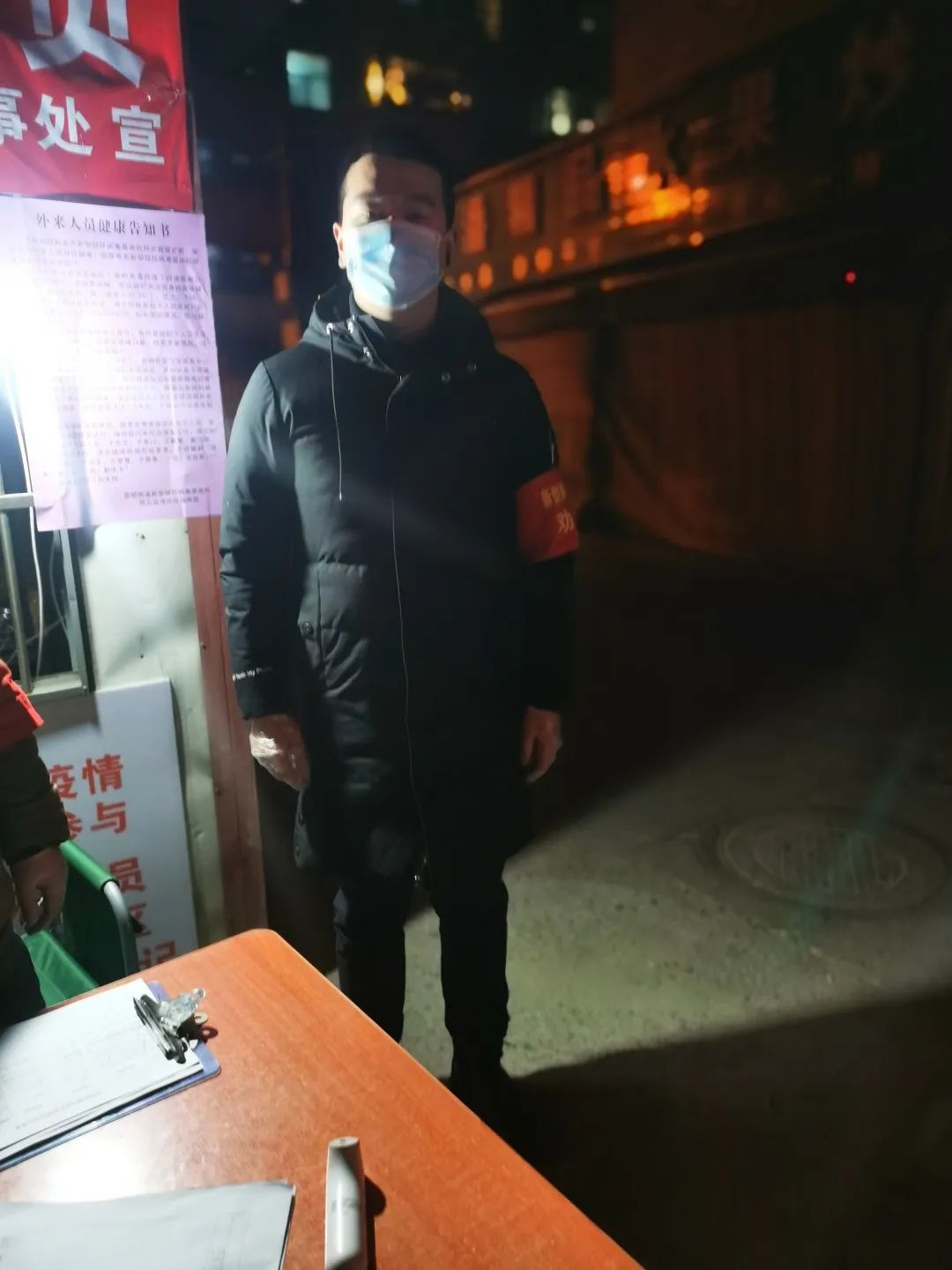 在疫情期間,主動加入到江蘇省句容市新村社區(qū)北二路疫情防控工作的隊伍中去。由于社區(qū)值班人員不足,他主動報名參加了晚上值班工作,從晚上7點一直到早晨7點,一共12個小時。他在的工作點內有一個菜市場,里面有很多出租戶,人員流動量相對來說比較大,小區(qū)內也有隔離觀察戶。他的任務就是對所有進出小區(qū)的人員進行盤查,并且檢測溫度,辦理出入證。雖然夜里氣溫較低,工作時間也比較長,但是作為一名共產黨員,他說“這是我應該承擔的責任。”