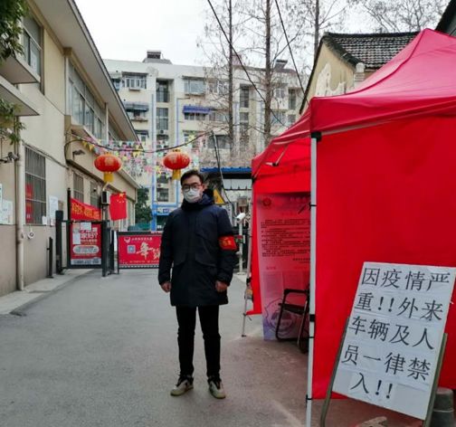 中共黨員,金融與經濟學院2016級金融學專業(yè)3班,班長。他于2月16日開始在南京市鼓樓區(qū)建鄴村檢疫站參加志愿者服務工作。他的工作主要是每天配合檢疫站工作人員對非小區(qū)人員進行勸返,對外來探親人員進行出行軌跡登記并進行測量體溫,巡視小區(qū)內走動住戶是否佩戴口罩等。