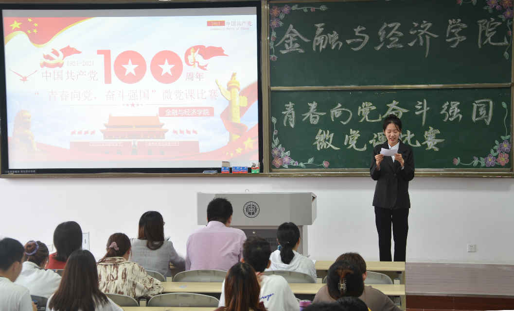 100年滄桑巨變,100年翻天覆地,100年砥礪前行。為增強黨史學(xué)習(xí)教育的生動性、提高黨員學(xué)習(xí)的積極性,金融與經(jīng)濟學(xué)院黨史學(xué)習(xí)教育宣講團于5月26日舉辦了“青春向黨,奮斗強國”的微黨課比賽,引領(lǐng)廣大青年學(xué)生愛國敬黨,不忘初心、牢記使命。