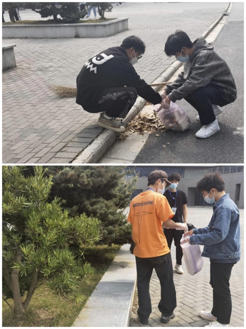在進行簡單明確的任務分配后,各位志愿者在各自負責的衛(wèi)生區(qū)域開始進行垃圾清掃。同學們紛紛行動起來,或是俯身撿起花壇周邊的透明塑料,或是清掃路邊沉積的落葉,志愿者們不怕臟,不喊累,相互配合,勞作之余仍能有說有笑,沐浴著微微春風,帶著喜悅的心情,不顯疲憊之態(tài),空氣中到處散發(fā)著春日少年的熱情。在所有人的齊心協(xié)力下,整個校園整潔如新。宿舍樓周邊道路及草坪深處均已不見塑料袋、瓜皮紙屑的蹤影。大家用自己的實際行動為學校增添一份清新的色彩。