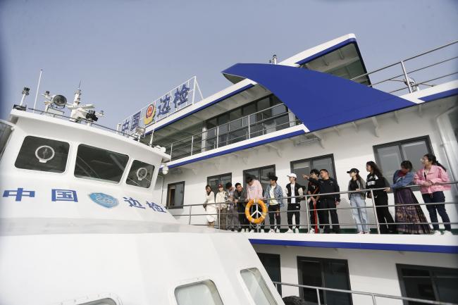 最后,同學(xué)們來(lái)到燕子磯五馬渡的江上邊檢艦,參觀了艦艇的內(nèi)部布局,簡(jiǎn)單了解了艦艇駕駛的操作手法。站在艦艇上,江風(fēng)拂過(guò)耳邊,同學(xué)們無(wú)不感嘆時(shí)代變遷帶來(lái)的便利與驚喜。