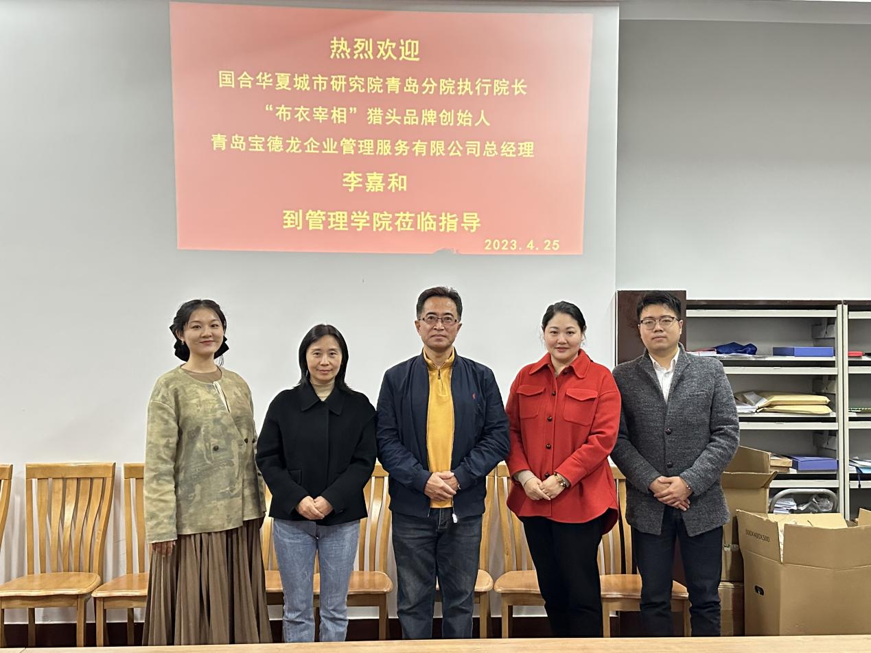 425日,管理學院組織訪企拓崗座談會,邀請了國合華夏城市研究院青島分院執(zhí)行院長、“布衣宰相”獵頭品牌創(chuàng)始人、青島寶德龍企業(yè)管理服務(wù)有限公司總經(jīng)理李嘉和先生來管理學院座談。