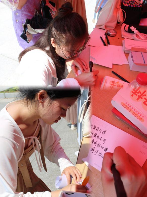 活動(dòng)現(xiàn)場人頭攢動(dòng),雖然酷暑難耐,但同學(xué)們的熱情只增不減。23屆畢業(yè)生以及其他年級的同學(xué)們積極參與其中,共同為畢業(yè)生送上溫暖而美好的畢業(yè)寄語。參與活動(dòng)的學(xué)生們依次有序地來到簽名墻前,在上面留下自己的名字和祝福。這個(gè)簡單而意義非凡的舉動(dòng),卻成為了他們最珍貴的回憶。同時(shí),信息學(xué)院還為參與活動(dòng)的學(xué)生們精心準(zhǔn)備了小禮物,作為對他們積極參與的認(rèn)可和回饋。每位學(xué)生都帶著笑容接過自己的小禮物,感受到了母校的關(guān)懷和祝福。