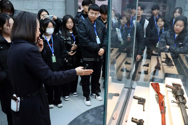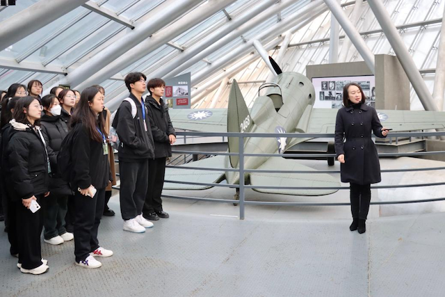 今年12月13日是第10個南京大屠殺死難者國家公祭日,硝煙雖已遠去,歷史的真相卻不能被掩蓋,國恥民殤不能被忘懷。伴隨著“和平鐘聲”的敲響,同學們依次參觀了“奮勇抗敵”、“國際援華”、“壯志凌云”和“緬懷先烈”四個紀念館,通過場館里的文物圖片、文史資料以及影像記錄全面了解了中、美、蘇等國空軍聯(lián)合抗擊日軍的英勇歷史,親身感受了青年英烈犧牲自我保衛(wèi)家國、以血肉之軀捍衛(wèi)中華蒼穹的壯舉。文字無聲,卻震耳欲聾。這不屈的抗爭時刻提醒著同學們:“強大,來之不易,和平,寸陰是惜。”