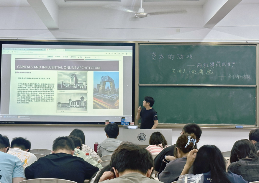 講座活動(dòng)以提問討論的形式開始,“為什么會(huì)討論‘網(wǎng)紅建筑’這個(gè)話題?”趙老師從三個(gè)角度給予答案,一是建筑文化的組成部分,未來也會(huì)成為建筑史的一部分;二是不僅新建建筑可以網(wǎng)紅化,歷史建筑、歷史街區(qū)也有網(wǎng)紅化現(xiàn)象;三是與社會(huì)發(fā)展直接相關(guān),與城市更新/鄉(xiāng)村振興相關(guān)。而這三個(gè)角度也與金融發(fā)展、社會(huì)變革息息相關(guān)。同學(xué)們從講座中了解到資本、政治、文化、社會(huì)多方面對(duì)建筑的影響,以及引申所在專業(yè)中所涉及的與鄉(xiāng)村振興發(fā)展、綠色金融相關(guān)的內(nèi)容可以繼續(xù)探索的方向,并從社會(huì)文化、藝術(shù)審美方面來思考推動(dòng)經(jīng)濟(jì)發(fā)展的新方向。