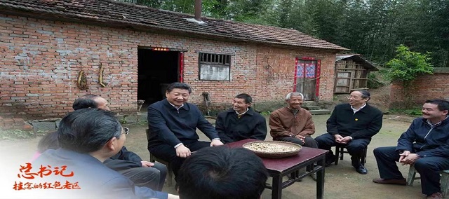 (圖為習近平總書記同老區(qū)干部群眾共商精準扶貧大計)