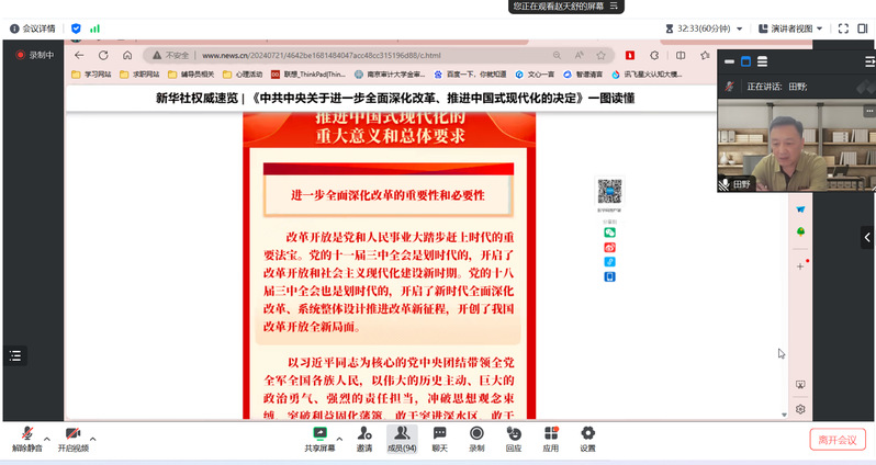 會(huì)議伊始,李福裕院長(zhǎng)首先介紹了本次會(huì)議的流程以及關(guān)于黨的二十屆三中全會(huì)的學(xué)習(xí)要求。隨后,李院長(zhǎng)帶領(lǐng)全體與會(huì)人員共同學(xué)習(xí)了《中共中央關(guān)于進(jìn)一步全面深化改革、推進(jìn)中國(guó)式現(xiàn)代化的決定》。學(xué)習(xí)過(guò)程中,李院長(zhǎng)強(qiáng)調(diào)了作為高等教育工作者和大學(xué)生,我們應(yīng)該深刻理解中國(guó)特色社會(huì)主義進(jìn)入新時(shí)代的重大意義,積極投身于全面深化改革的偉大實(shí)踐。他特別指出,教育是國(guó)之大計(jì)、黨之大計(jì),高等教育工作者和大學(xué)生要增強(qiáng)“四個(gè)意識(shí)”、堅(jiān)定“四個(gè)自信”、做到“兩個(gè)維護(hù)”,在推動(dòng)教育改革、培養(yǎng)創(chuàng)新人才等方面發(fā)揮積極作用。