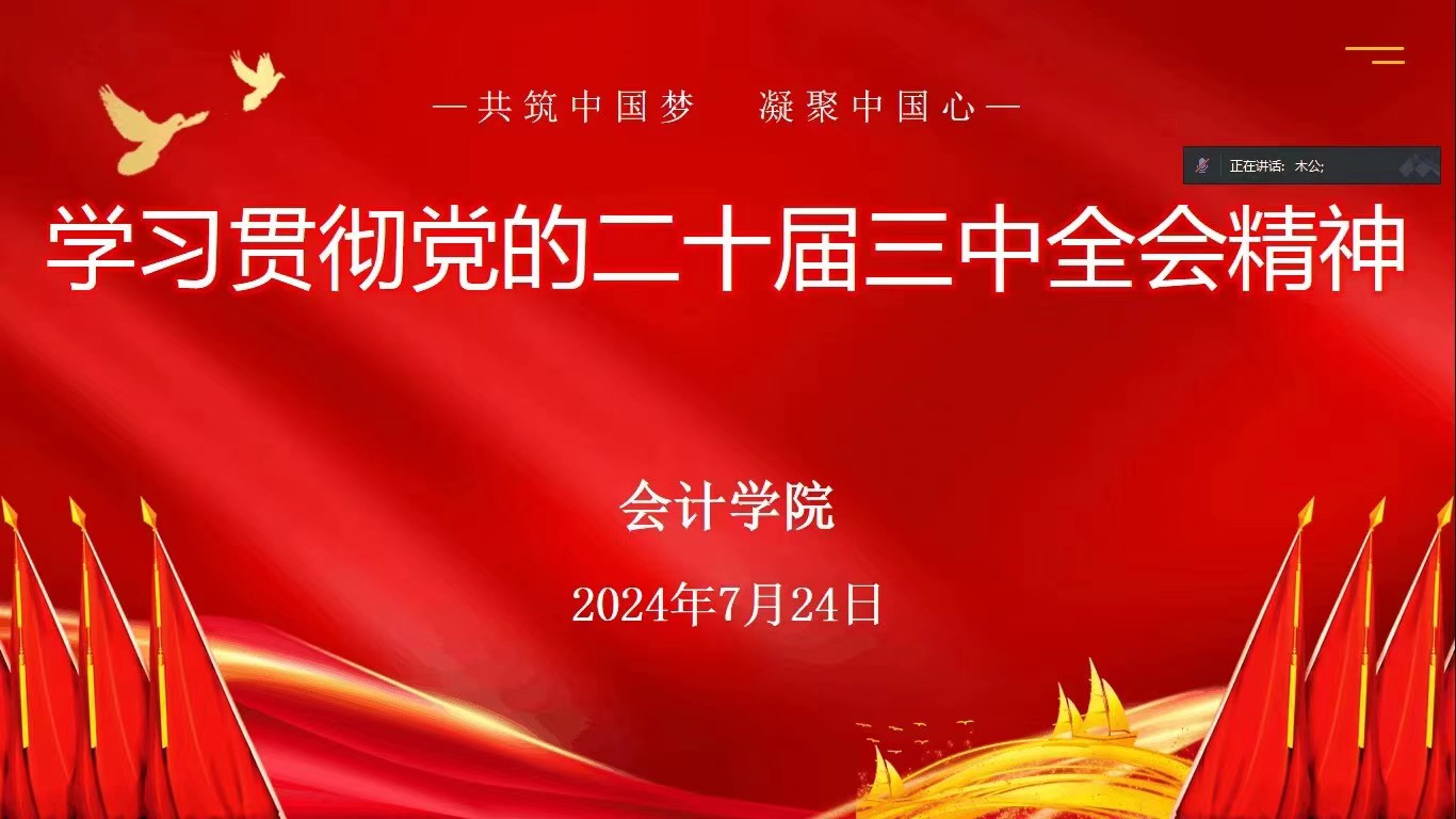 7 月 24 日,南京審計大學金審學院會計學院組織全院教職工深入學習貫徹黨的二十屆三中全會精神。