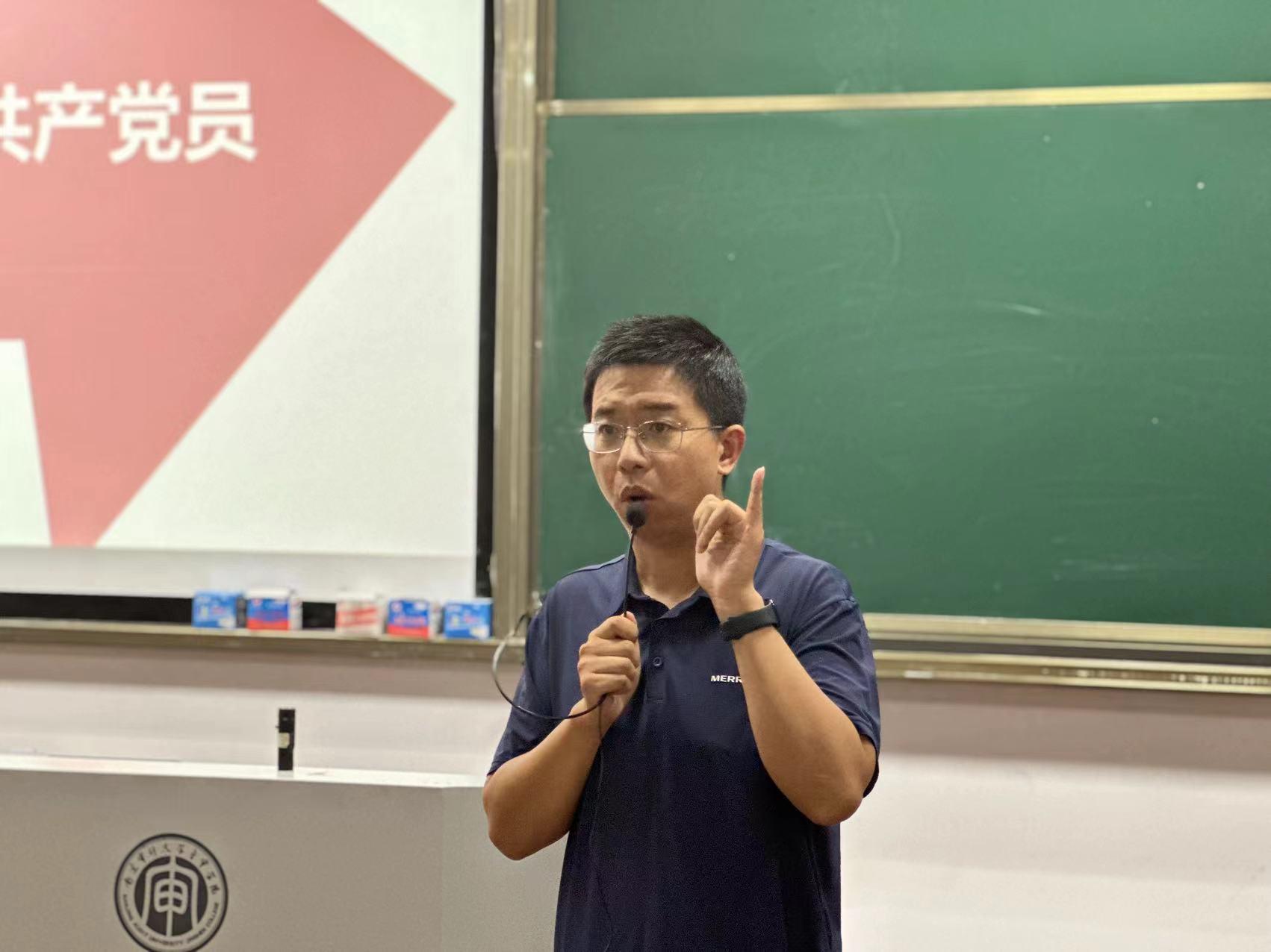 接著,胥成鑫老師詳細(xì)講解了如何端正入黨動(dòng)機(jī)、黨員發(fā)展基本流程及關(guān)鍵時(shí)間節(jié)點(diǎn)、入黨申請(qǐng)書規(guī)范撰寫要求等內(nèi)容,明確了高校黨員在政治思想、品德修養(yǎng)、學(xué)習(xí)學(xué)業(yè)、能力素質(zhì)等方面的基本要求,他通過學(xué)姐通過自己堅(jiān)持不懈的精神最終考研進(jìn)入南財(cái)這一生動(dòng)切實(shí)例子,指出堅(jiān)持的重要性,運(yùn)用了切實(shí)的例子為大家講解如何成為一名共產(chǎn)黨員。