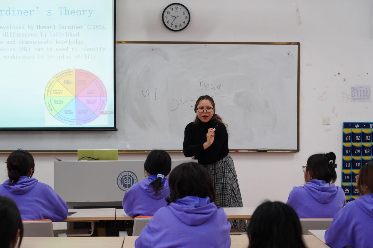 講座伊始,Deya老師就向我們介紹了霍華德·加德納理論,并詳細(xì)講解了8種學(xué)習(xí)風(fēng)格與多元智能。她通過有趣易懂的講解與豐富的交流互動(dòng),在問答中促進(jìn)了同學(xué)們對(duì)于自身情況的思考,無(wú)形之中為同學(xué)們的未來規(guī)劃指明了路線。同時(shí),全英文的講解與溝通也提升了同學(xué)們的口語(yǔ)能力,加強(qiáng)了用英語(yǔ)交流的自信心。
