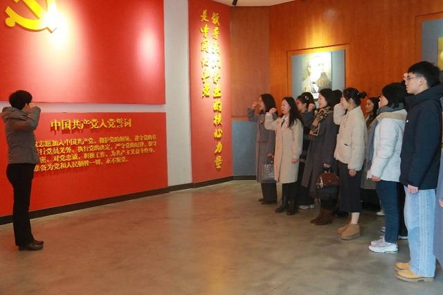 參觀尾聲,黨員師生面對鮮紅的黨旗在領(lǐng)誓人的帶領(lǐng)下舉起右拳莊嚴宣誓,重溫入黨誓詞,再一次用錚錚誓言詮釋入黨初心。金融與經(jīng)濟學院的全體黨員將牢記入黨誓詞,堅定理想信念,傳承紅色精神,勇?lián)鷷r代重任,不忘初心,砥礪前行,書寫新時代共產(chǎn)黨員的輝煌篇章。