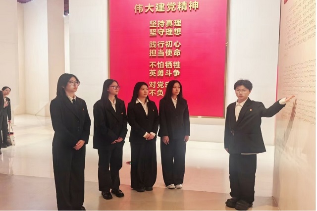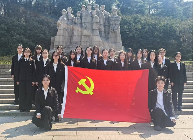 松柏蒼翠蔭陵園,豐碑矗立憶英魂。雨花臺烈士紀(jì)念碑前,同學(xué)們?nèi)w肅立,高唱國歌,向烈士敬獻(xiàn)鮮花,用實際行動表達(dá)對英烈的崇敬與追思。在《國際歌》激昂奮進(jìn)的旋律中,黨支部學(xué)生代表帶領(lǐng)大家重溫入黨誓詞,以鏗鏘有力的誓言堅定了“植根人民,服務(wù)人民”的決心。