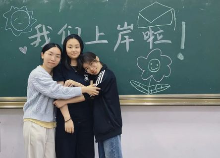陽光透過斑駁的梧桐葉,斜斜灑在教室后墻的黑板上。上岸兩個大字被金芒鍍上金邊,粉筆勾勒的箭頭刺破云層,指向遠(yuǎn)方。陳心瑤、趙慧敏、吳婉禎,她們的影子在陽光里交疊,恍惚間又回到那天,三人擠在堆滿習(xí)題冊的課桌前,鄭重約定:要上岸,就一起上岸。