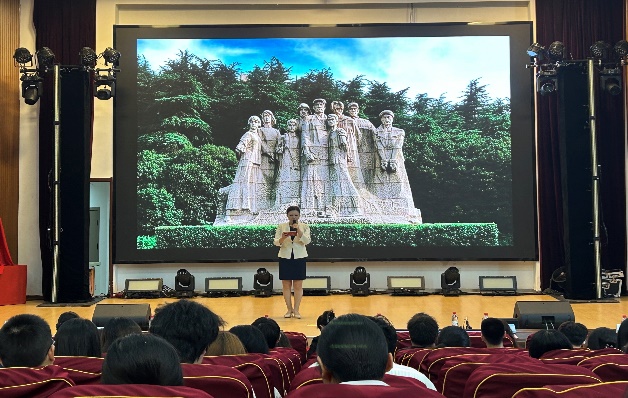 宣講活動(dòng)在沉浸式短片中拉開(kāi)帷幕。宣講團(tuán)成員以信仰的力量為主題,深情講述五位英烈的感人事跡:南泥灣拓荒者劉亞生烈士在獄中堅(jiān)守信仰的鋼鐵意志;“黎明前的血衣”背后革命伉儷的生死絕戀;藝術(shù)家趙良璋烈士“左手持槍、右手執(zhí)筆”的革命浪漫主義;白丁香烈士為保護(hù)戰(zhàn)友慷慨赴義的巾幗豪情;孫小梅烈士投身解放事業(yè)的青春壯歌。宣講者以多個(gè)人稱(chēng)視角敘事,配合歷史圖片與場(chǎng)景還原,帶領(lǐng)師生重返烽火連天的革命歲月。