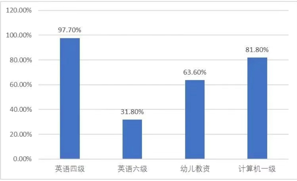 班級中多人獲得藝術(shù)考級證書,其中,14人通過鋼琴五級以上考級,10人通過聲樂五級以上考級,12人通過舞蹈考級。此外,班級有28人獲得教師資格證書。