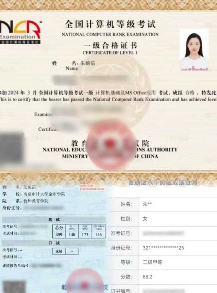 朱婉茹,女,漢族,江蘇宿遷人,共青團(tuán)員,教師教育學(xué)院2023級學(xué)前2班學(xué)生。在校期間,朱婉茹曾 獲“校三等獎學(xué)金”、“優(yōu)秀團(tuán)干部”稱號、“南京審計(jì)大學(xué)金審學(xué)院2025年校園‘健美操、啦啦操’大眾健美操‘第一名’”。先后又通過“大學(xué)英語四級”、“計(jì)算機(jī)一級”、“普通話二級甲等”。參加了團(tuán)代會第二次代表大會,在班級中擔(dān)任班長一職,所在班級榮獲“優(yōu)秀志愿者團(tuán)隊(duì)”、“先進(jìn)班集體”、“優(yōu)良班風(fēng)班”;在宿舍中擔(dān)任宿舍長一職,所在宿舍連續(xù)獲得“文明宿舍”稱號。
