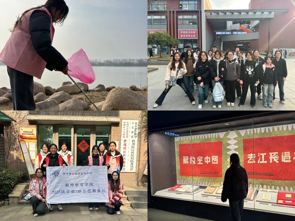 教師教育學(xué)院始終倡導(dǎo)“實(shí)踐出真知”的理念,她帶領(lǐng)班級通過豐富的實(shí)踐活動將課堂所學(xué)轉(zhuǎn)化為社會價值。在校園,組織同學(xué)清掃校園,守護(hù)“我們的家”。二月里,參與“傳承雷鋒精神,綻放時代光芒”實(shí)踐,赴長江邊,雖寒風(fēng)凜冽,仍齊心協(xié)力撿垃圾,讓江岸重歸整潔;后又走進(jìn)渡江戰(zhàn)役紀(jì)念館,回溯歷史偉力,以青春之姿展現(xiàn)“敢想敢為、善作善成”擔(dān)當(dāng)。這些經(jīng)歷不僅拓展了她的視野,更讓她體會到:唯有走出象牙塔,方能觸摸時代脈搏,與社會同頻共振。