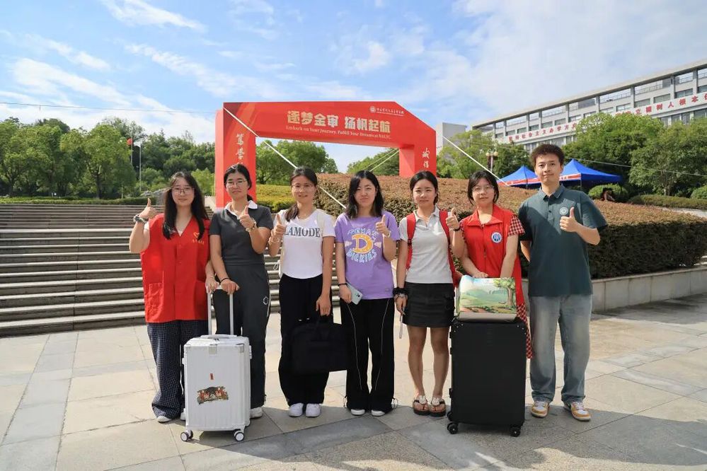 ? 學(xué)校北門、東門、西門門口,身著志愿服的學(xué)長學(xué)姐早早等候,主動接過沉甸甸的行李,用一句“歡迎來到金審!”驅(qū)散旅途的疲憊。