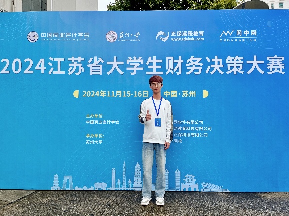 張韜,2004年12月生,江蘇徐州人,2024級會計5班班長,獲“金審杯”辯論賽亞軍,演講與口才協(xié)會“優(yōu)秀社員”稱號,在2025江蘇省高校公開辯論賽新生組初賽中獲“最佳辯手”,參與2025江蘇省高校公開辯論賽。雅思6.5,通過全國大學(xué)英語四級考試,獲“U詞杯全國大學(xué)生英語競賽國級二等獎”、“外研社國才杯綜合能力測試校級金獎”、“外研社國才杯筆譯比賽校級銀獎”、“外研社國才杯演講比賽校級銅獎”,獲Speaking Showtime 演講比賽優(yōu)秀獎,曾獲優(yōu)秀志愿者稱號。所在宿舍獲得“軍訓(xùn)先進(jìn)宿舍”、“四星級宿舍”和“先進(jìn)文明宿舍”稱號,多次組織策劃班級活動,·所在班級獲得“優(yōu)良班風(fēng)班”稱號。