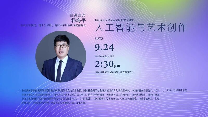 當天下午還舉辦了由南京信息工程大學周越教授帶來的《從經典到智能:新時代視聽語言的轉型與挑戰(zhàn)》的精彩講座,以及江蘇省科學與藝術創(chuàng)新大賽宣講會。9月24日,展覽配套活動還包括“AIGC+AR創(chuàng)新設計工作坊”及南京大學楊海平教授主講的《人工智能與藝術創(chuàng)作》專家講座。