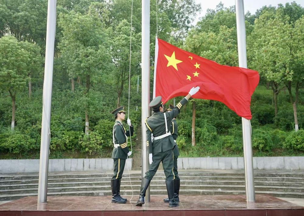 伴隨著雄偉莊嚴(yán)的《義勇軍進(jìn)行曲》,五星紅旗冉冉升起。國(guó)旗飄揚(yáng),國(guó)歌雄壯,全場(chǎng)肅穆,行注目禮。