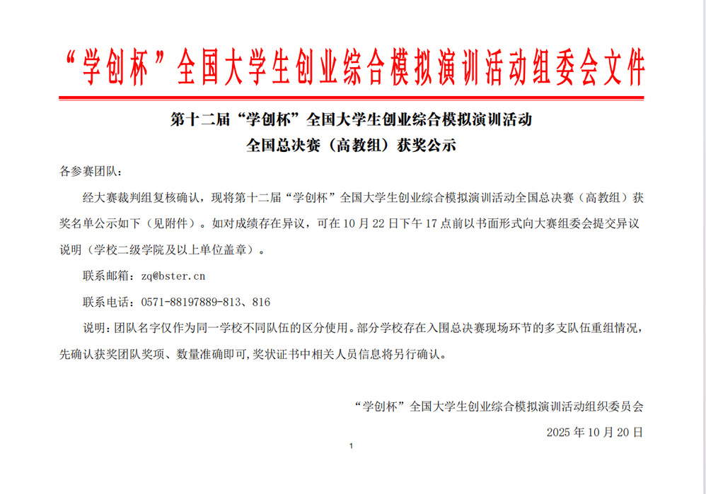 此次大賽由高等學(xué)校國(guó)家級(jí)實(shí)驗(yàn)教學(xué)示范中心聯(lián)席會(huì)經(jīng)濟(jì)與管理學(xué)科組、中國(guó)陶行知研究會(huì)聯(lián)合主辦,是國(guó)內(nèi)高校創(chuàng)業(yè)教育領(lǐng)域的重要賽事。作為被納入中國(guó)高等教育學(xué)會(huì)《全國(guó)普通高校大學(xué)生競(jìng)賽排行榜》的權(quán)威賽事,“學(xué)創(chuàng)杯” 始終以“以賽促學(xué)、以賽促創(chuàng)”為核心,聚焦大學(xué)生創(chuàng)業(yè)實(shí)踐能力與綜合素養(yǎng)提升,也是我校重點(diǎn)培育的 A 類賽事——學(xué)校長(zhǎng)期將其作為檢驗(yàn)創(chuàng)新創(chuàng)業(yè)教育成果、鍛煉學(xué)生實(shí)踐能力的關(guān)鍵平臺(tái),每年均全力支持師生參與。