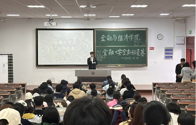 為積極響應(yīng)“我為同學(xué)做實(shí)事”實(shí)踐活動號召,切實(shí)提升青年學(xué)生的金融安全意識與綜合防范能力,11月12日下午,金融與經(jīng)濟(jì)學(xué)院在C南101教室成功舉辦“金融+安全”知識競賽。作為學(xué)院“金盾行動”系列活動的首場項(xiàng)目,本次活動聚焦金融風(fēng)險防范與校園安全教育,通過“視頻導(dǎo)學(xué)+競技答題”的融合形式,引導(dǎo)同學(xué)們樹牢“安全第一、風(fēng)險可控”的理念,筑牢校園金融安全防線。