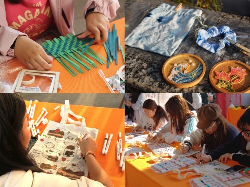 演出前,校園內的“高雅藝術集市”同樣熱鬧非凡。六大特色集市活動讓師生近距離觸摸傳統文化:DIY手工社的非遺扎染體驗,讓大家親手制作藍白紋樣方巾與發(fā)圈,感受東方美學的靈動;印象西部協會戲劇主題手繪帆布袋公益活動,以畫筆傳遞關愛,成品將送往山區(qū)孩子手中;墨韻國風文化社帶來的竹編與掐絲琺瑯體驗,讓零基礎的師生也能打造專屬非遺杯墊;益暖社“以物換花”活動倡導環(huán)保理念,讓閑置舊物煥發(fā)新生;戲劇表演社團通過撥浪鼓畫臉譜活動融合傳統戲曲與創(chuàng)意設計,培育文化自信;學生社團聯合會以“打卡換非遺手串”活動則鼓勵師生定格校園美景,讓非遺韻味與青春記憶相伴。豐富的互動形式讓高雅藝術走出舞臺,成為可觸摸、可參與、可傳承的生活體驗。