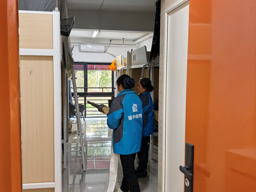 在宿舍起火演練中,模擬宿舍內因電器使用不當引發(fā)火情。宿管人員第一時間攜帶滅火器趕赴現場,并使用室內消防栓展開撲救,同步啟動警報系統(tǒng),引導樓內人員有序疏散,展現出訓練有素的處置流程。