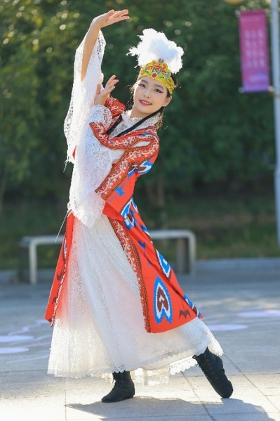 下午13:30,展演在期待中準(zhǔn)時(shí)開(kāi)始。廣場(chǎng)上,舞蹈團(tuán)的同學(xué)們傾情投入,以極具張力的表演,帶領(lǐng)觀眾進(jìn)行了一場(chǎng)跨越山河的文化之旅。豪邁奔放的草原舞步、靈動(dòng)柔美的江南韻律、神秘圣潔的雪域情懷、熱情似火的邊陲風(fēng)情……一個(gè)個(gè)精心打磨的節(jié)目,如同一塊塊多彩的拼圖,共同繪就了中華民族多元一體的動(dòng)人畫(huà)卷。同學(xué)們用青春的舞姿,生動(dòng)講述了“我們從歷史深處攜手走來(lái)”的共同體故事,贏得了現(xiàn)場(chǎng)陣陣掌聲。