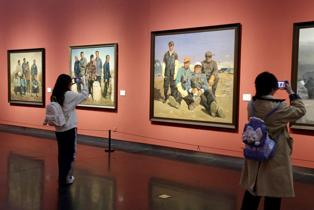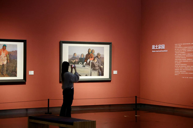 走進展廳,支部團員便被濃郁的藝術(shù)氛圍與真摯的“泥土氣息”包圍,大家?guī)е鴮I(yè)探索的目光,圍繞每一幅作品細細駐足。面對陸慶龍先生以農(nóng)民工、普通農(nóng)民為原型的油畫作品,支部團員們一邊觀察油彩厚重的肌理如何勾勒出勞動者黝黑的皮膚、粗糙的雙手,一邊結(jié)合共青團“扎根人民、服務(wù)人民”的價值導(dǎo)向,探討畫面中堅毅眼神與沾滿塵土工服所傳遞的精神力量。