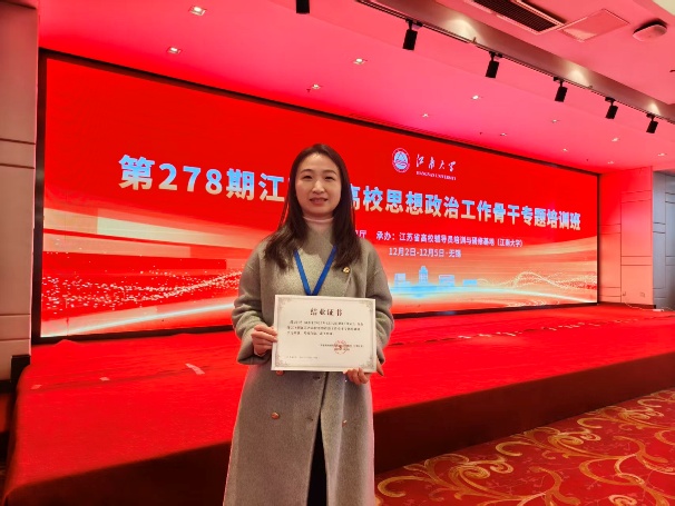 12月3日,第278期江蘇省高校思想政治工作骨干專(zhuān)題培訓(xùn)班在江南大學(xué)順利開(kāi)班,我院輔導(dǎo)員薛玲艷老師參加了此次專(zhuān)題培訓(xùn)。本次培訓(xùn)通過(guò)專(zhuān)題學(xué)習(xí)與實(shí)地研學(xué)相結(jié)合的方式,有效拓寬了輔導(dǎo)員的工作思路,為提升我院大學(xué)生生涯教育與就業(yè)指導(dǎo)工作質(zhì)量注入了新動(dòng)能。