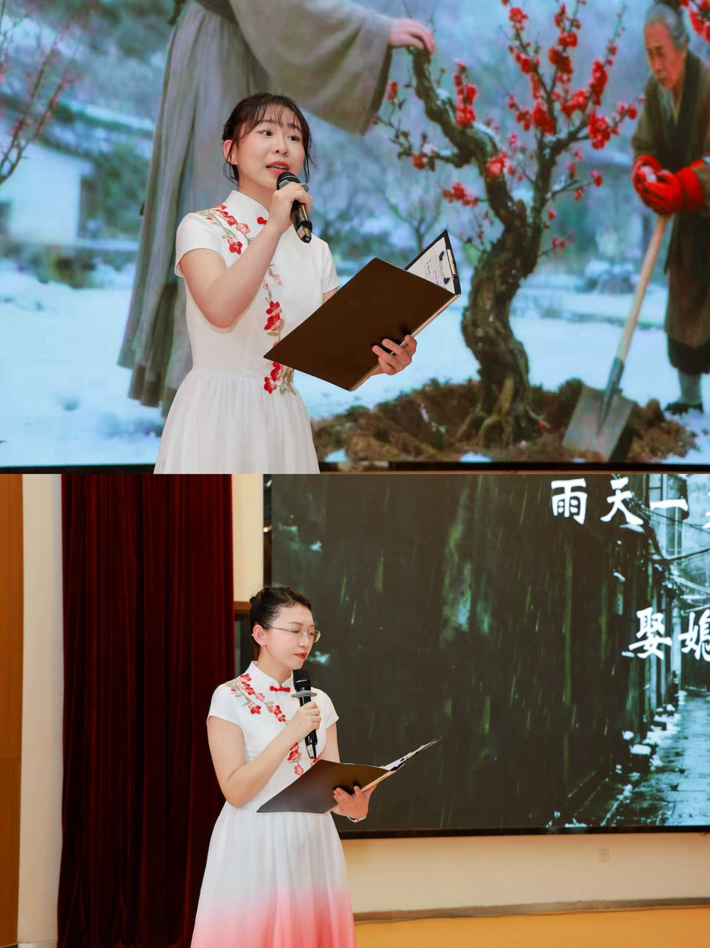 區(qū)別于傳統(tǒng)的演講或朗誦,本次活動首創(chuàng)“全鏈條共創(chuàng)”模式,師生角色從單純的表演者延伸為共同創(chuàng)作者。從前期故事腳本的精心打磨、契合主題的PPT視覺背景設(shè)計,到氛圍音樂的推薦遴選、甚至為特定篇章進行的現(xiàn)場樂器彈奏以及和聲的演繹,最終到舞臺上富有戲劇張力的綜合呈現(xiàn)——每一個環(huán)節(jié)都深深烙下了師生共同的思考與創(chuàng)意。這一過程本身,就是一次深刻的美育實踐,讓參與者從“聆聽歷史”轉(zhuǎn)變?yōu)椤瓣U釋歷史、表達歷史”。