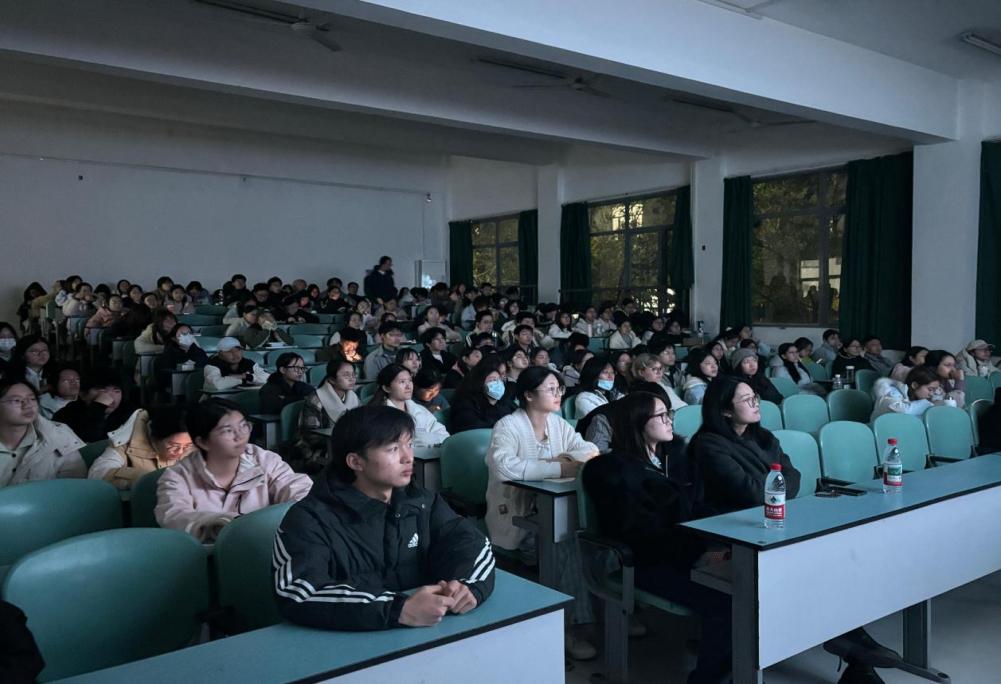 活動伊始,段老師上臺作簡短發(fā)言,深情回望1937年南京大屠殺的慘痛歷史,強(qiáng)調(diào)國家公祭日的核心意義的同時,寄語全體學(xué)子銘記民族苦難、汲取奮進(jìn)力量,以青年之姿扛起時代責(zé)任,珍惜當(dāng)下和平生活的來之不易,發(fā)言質(zhì)樸真摯,為整場觀影活動奠定莊重肅穆的基調(diào)。