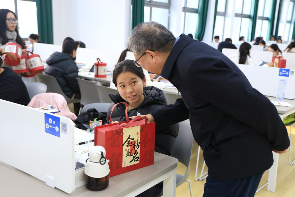 近年來,我校大力推進卓越學生考研奮進工程,高度重視考研工作,從隊伍建設(shè)、學風建設(shè)、基礎(chǔ)保障等方面多措并舉,提升學工系統(tǒng)全員考研服務(wù)能力,強化學生培養(yǎng)全過程管理,構(gòu)建校內(nèi)外全方位考研支持環(huán)境,切實助力學生實現(xiàn)升學夢想,有效推進學生高質(zhì)量培養(yǎng)。校領(lǐng)導此次慰問,既為我校考研學子提振信心、舒緩壓力,也讓大家深切感受到學校的關(guān)懷與暖意,以更加從容自信的姿態(tài)奔赴考場。