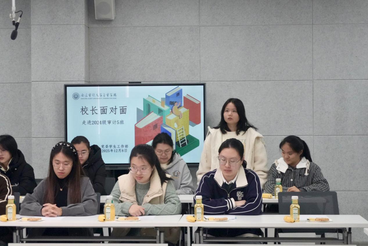 據(jù)悉,2024級(jí)審計(jì)5班是一個(gè)極具特色的班級(jí),共有52名同學(xué),其中包含回族、壯族、布依族、蒙古族、仡佬族等6名少數(shù)民族同學(xué)。班級(jí)學(xué)風(fēng)扎實(shí),目前19人通過大學(xué)英語四級(jí),8人通過全國計(jì)算機(jī)二級(jí),獎(jiǎng)學(xué)金獲得者10人,團(tuán)員27人,入黨積極分子5人。座談會(huì)上,同學(xué)們圍繞“學(xué)業(yè)提升與實(shí)習(xí)實(shí)踐”“課程知識(shí)與現(xiàn)實(shí)應(yīng)用”“個(gè)人成長與職業(yè)規(guī)劃”“少數(shù)民族學(xué)生融入與發(fā)展”等話題暢所欲言。俞安平校長對(duì)每一位發(fā)言的同學(xué)都給予高度關(guān)注,并認(rèn)真回答同學(xué)的問題。同學(xué)們提出的問題具有鮮明的專業(yè)特色和現(xiàn)實(shí)關(guān)懷,從課程設(shè)置到實(shí)習(xí)機(jī)會(huì),從考研考公到行業(yè)發(fā)展,體現(xiàn)了審計(jì)學(xué)子對(duì)個(gè)人成長和時(shí)代需求的深刻思考。