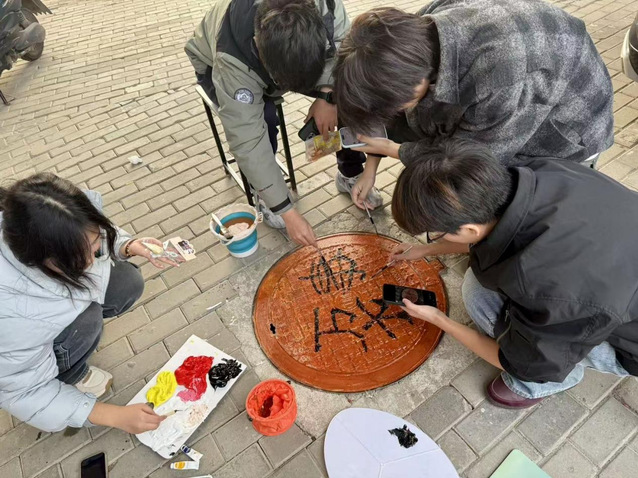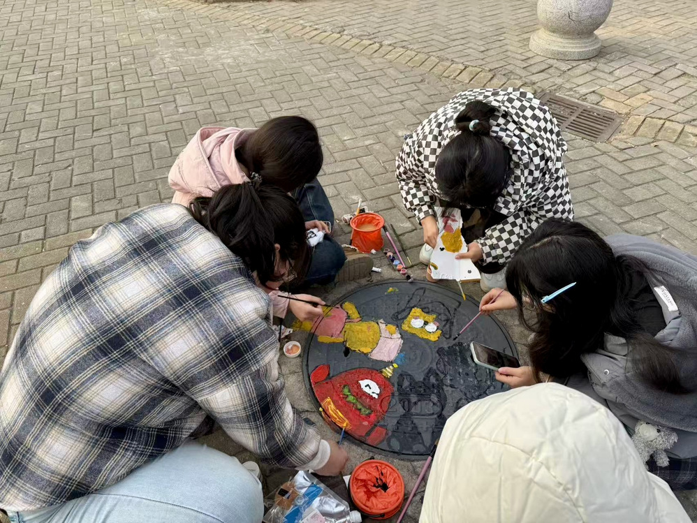 活動(dòng)現(xiàn)場(chǎng)熱鬧非凡,同學(xué)們以小組為單位,提前備好顏料、畫筆、調(diào)色盤等工具,準(zhǔn)時(shí)抵達(dá)指定區(qū)域集合。圍繞井蓋展開熱烈討論,從主題構(gòu)思到色彩搭配,從線條勾勒到細(xì)節(jié)填充,每一個(gè)環(huán)節(jié)都反復(fù)斟酌、精益求精。