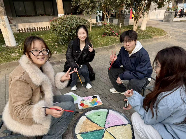 原本單調(diào)冰冷的井蓋,在同學(xué)們的奇思妙想與巧手繪制下,搖身一變成為一個(gè)個(gè)獨(dú)具特色的“地面藝術(shù)品”。路過的師生紛紛駐足觀賞、由衷贊嘆,不少同學(xué)拿出手機(jī)拍照留念,記錄下這抹校園亮色。甚至有其他學(xué)院的學(xué)生被現(xiàn)場(chǎng)氛圍感染,主動(dòng)提出加入創(chuàng)作,與藝術(shù)設(shè)計(jì)學(xué)院的學(xué)子一同調(diào)色、涂鴉,活動(dòng)現(xiàn)場(chǎng)始終洋溢著歡聲笑語與創(chuàng)作熱情。