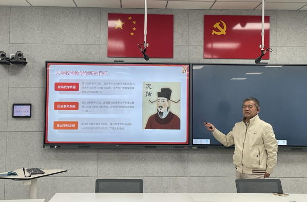 隨后,盧殿臣教授聚焦核心議題,強(qiáng)調(diào)教學(xué)創(chuàng)新既是提升課堂教學(xué)質(zhì)量的核心引擎,更是教學(xué)競(jìng)賽中彰顯競(jìng)爭(zhēng)力的關(guān)鍵評(píng)分維度。研討中,他明確了大學(xué)數(shù)學(xué)教學(xué)創(chuàng)新的三大實(shí)踐路徑:在內(nèi)容創(chuàng)新層面,需引入貼近生活實(shí)際與專業(yè)場(chǎng)景的案例,有機(jī)融入課程思政元素,讓抽象的數(shù)學(xué)知識(shí)具象化、生活化;在方法創(chuàng)新層面,應(yīng)積極推廣案例教學(xué)法,深化線上線下混合式教學(xué)模式應(yīng)用,有效激活課堂教學(xué)活力;在評(píng)價(jià)創(chuàng)新層面,要強(qiáng)化過(guò)程性評(píng)價(jià),優(yōu)化多元考核方式,實(shí)現(xiàn)對(duì)學(xué)生學(xué)習(xí)成效的全面、精準(zhǔn)衡量。此外,盧教授還分享了江蘇大學(xué)的教學(xué)改革實(shí)踐經(jīng)驗(yàn),為參會(huì)教師提供了寶貴的借鑒范式。