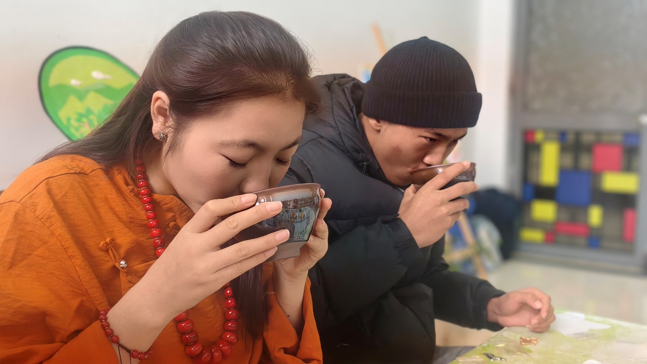 活動(dòng)伊始,工作坊內(nèi)播放著悠揚(yáng)的藏族音樂,美育教研室還精心準(zhǔn)備了漢族傳統(tǒng)點(diǎn)心和清香甘醇的藏族雪菊茶,為參與學(xué)生營(yíng)造出溫馨親切的氛圍。