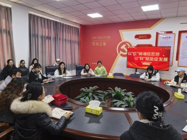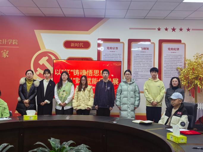 為深入學(xué)習(xí)貫徹習(xí)近平新時(shí)代中國(guó)特色社會(huì)主義思想,鞏固拓展主題教育成果,總結(jié)年度黨建工作成效,凝聚支部發(fā)展合力。12月29日中午,會(huì)計(jì)學(xué)院學(xué)生黨支部于C西506召開(kāi)“以‘紅’鑄魂悟思想,以‘財(cái)’賦能促發(fā)展”年末總結(jié)會(huì)。本次會(huì)議由會(huì)計(jì)學(xué)院學(xué)生黨支部書記孫含笑主持,會(huì)計(jì)學(xué)院黨總支書記于璐、會(huì)計(jì)學(xué)院學(xué)生黨員代表與大三全體發(fā)展對(duì)象參加本次會(huì)議。