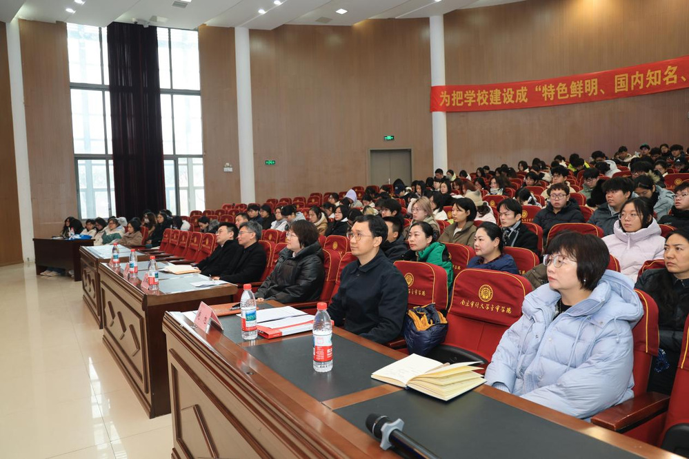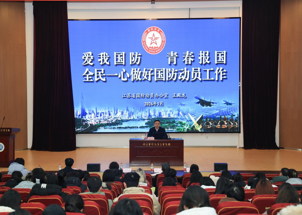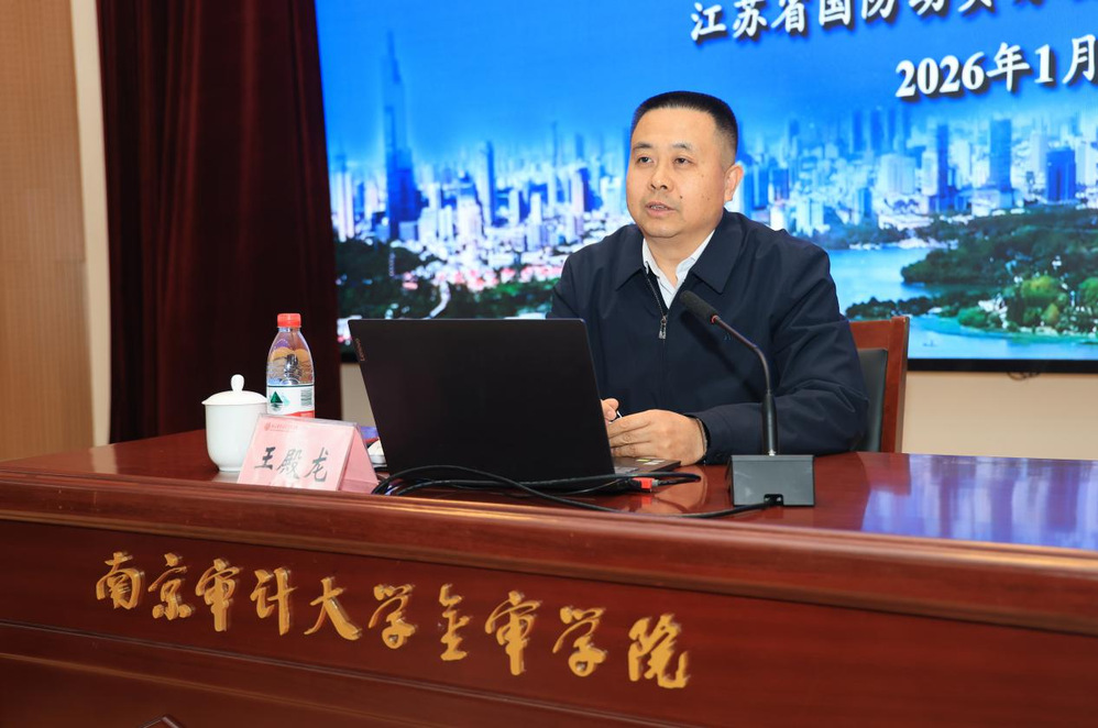 2026年1月4日,我校邀請江蘇省國防動(dòng)員辦公室黨組成員、副主任王殿龍以“愛我國防青春報(bào)國——全民一心做好國防動(dòng)員工作”為主題講授思政課。南京審計(jì)大學(xué)金審學(xué)院黨委書記王軍主持講座,黨委委員成庭羽、孟琪璐,各黨總支書記、黨委辦公室、學(xué)生處相關(guān)人員、輔導(dǎo)員及學(xué)生代表300余人參加講座。