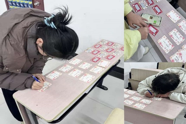 緊接著是祝福刮刮樂環(huán)節(jié),更是將活動(dòng)推向創(chuàng)意高潮。同學(xué)們伏案執(zhí)筆,將對(duì)伙伴的美好祝愿、對(duì)新年的殷切期盼凝于筆尖。有的寫下“新歲如愿,萬事勝意”的暖心寄語,有的畫上憨態(tài)可掬的小馬圖案,為賀卡增添新春氛圍。寫完祝福的同學(xué),興奮地拿著賀卡兌換刮刮樂,現(xiàn)場頓時(shí)充滿期待與歡呼。“中獎(jiǎng)啦!”隨著一聲聲驚喜的呼喊,中獎(jiǎng)的同學(xué)笑容燦爛,未中獎(jiǎng)的同學(xué)也毫不掃興,反而被這份歡樂氛圍感染,互相分享著賀卡上的趣味祝福,暖意融融。