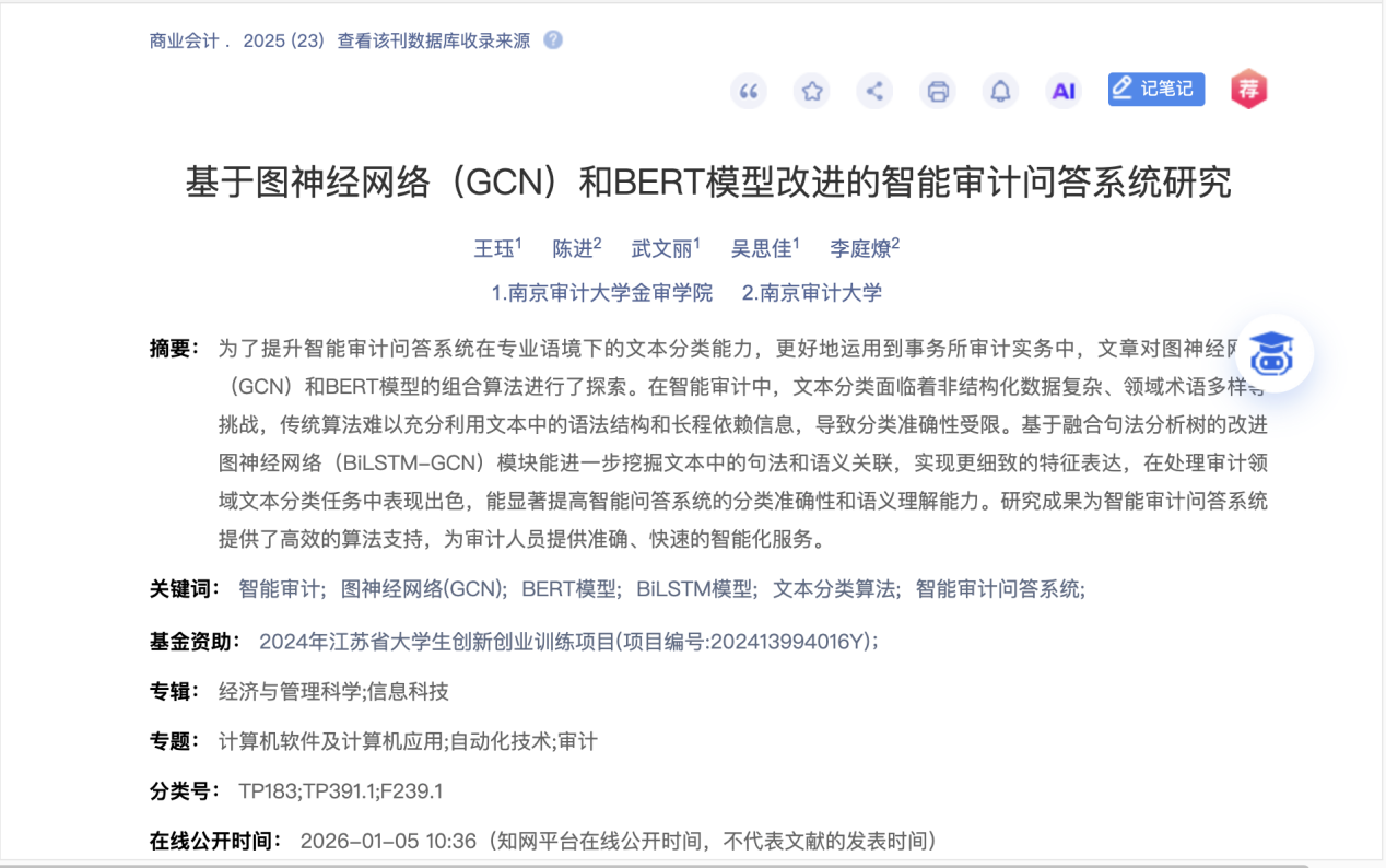 基于圖神經(jīng)網(wǎng)絡(luò)(GCN)和BERT模型改進的智能審計問答系統(tǒng)研究